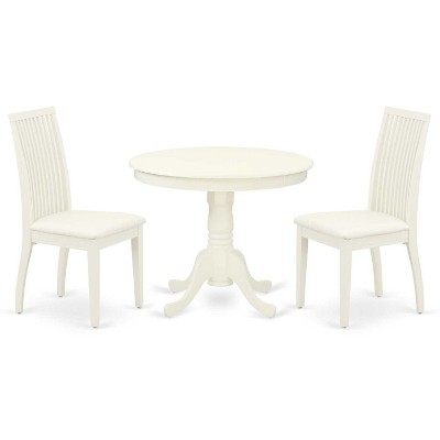 3-Piece Linen White Finish Solid Wood Top - Round Dining Room Set - Seats 4