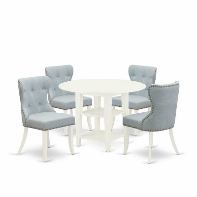 5-Piece Linen White Finish Solid Wood Top - Dining Room Set - Seats 4