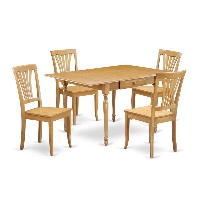 HomeStock 5-Pc Natural Oak Finish Solid Wood Top-Dining Room Set with Dropleaf-Seats 4
