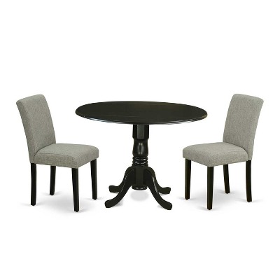 HomeStock 3-Pc Black Finish Solid Wood Top-Round Dining Room Set with Dropleaf-Seats 4