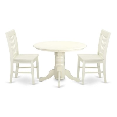 HomeStock 3-Pc Linen White Finish Solid Wood Top - Round Dining Room Set - Seats-4