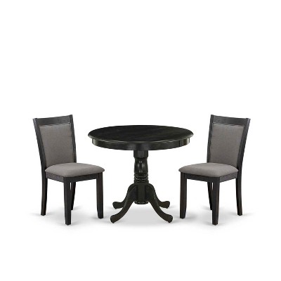 HomeStock 3-Pc Black Finish Solid Wood Top - Round Dining Room Set - Seats 4