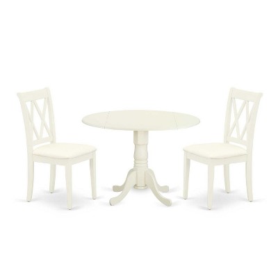 3-Piece Linen White Finish Solid Wood Top - Round Dining Room Set - Seats 4
