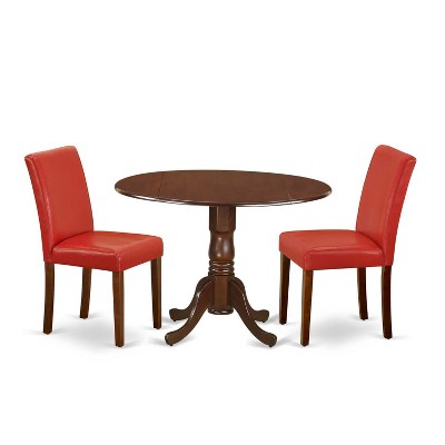 HomeStock 3-Pc Mahogany Finish Solid Wood Top-Round Dining Room Set with Dropleaf-Seats 4