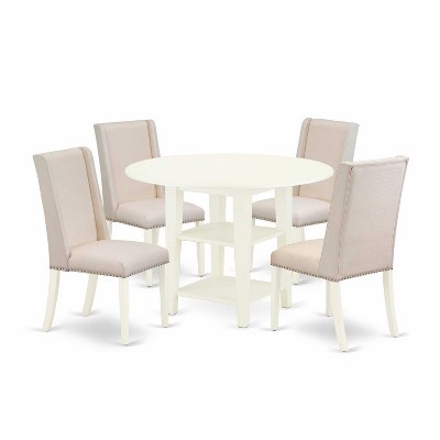 HomeStock 5-Pc Linen White Finish Solid Wood Top - Round Dining Room Set - Seats 4