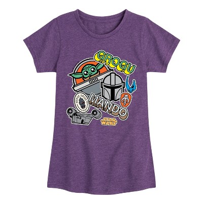 Girls' - The Mandalorian - Mando Grogu Stickers Fitted Short Sleeve Graphic T-Shirt