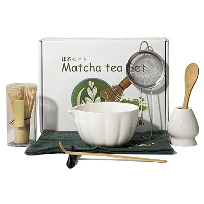 Complete 6-Piece Matcha Set,Ceramic Matcha Bowl & Bamboo Whisk Set with Scoop, Sifter, Chasen Holder & Brush,for Beginners&Enthusiasts