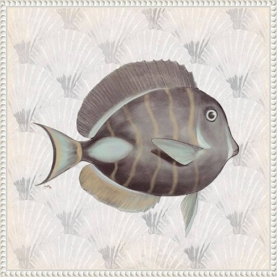 Amanti Art 22"x22" Neutral Vintage Fish II by Elizabeth Medley Framed Canvas Wall Art Print: Modern Decor, Polystyrene Frame