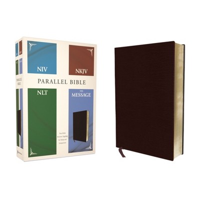 Niv, Nkjv, Nlt, the Message, (Contemporary Comparative) Parallel Bible, Bonded Leather, Burgundy - by Zondervan (Leather Bound)