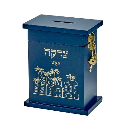 Rite Lite 5.5" Classical Enameled Wood Tzedakah Box - Blue/Gold