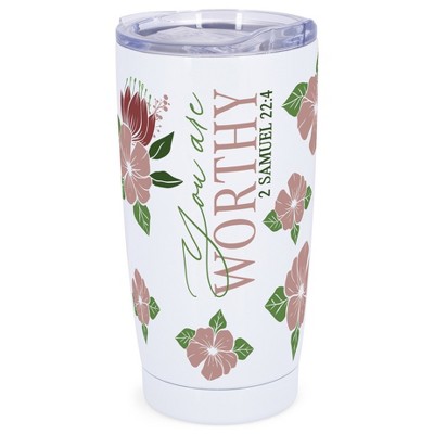 Elanze Designs 20 oz Stainless Steel On the Go Insulated Travel Tumbler With Push Top Lid, You Are Worthy White