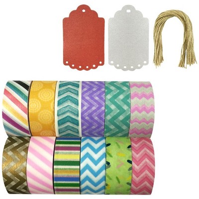 Wrapables Set of 12 Washi Tapes Decorative Masking Tapes + 20 Shimmer Tags
