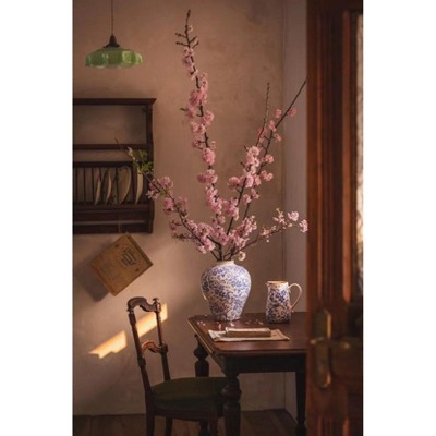 Gulches Round Ceramic Vase with Distressed White Finish Blue Floral Motif Ming Dynasty Style for Tabletop Mantel Decor White+Blue