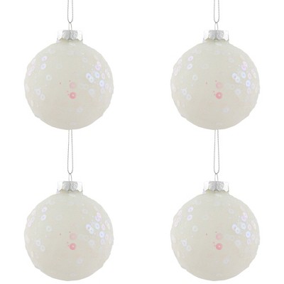 Northlight Frosted Sequined Christmas Ball Glass Ornaments - 2.75" (70mm) - White - 4ct