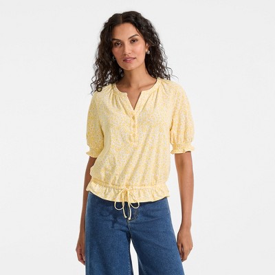 Lands' End Women's Elbow Sleeve Lightweight Jersey Gathered Adjustable Hem Blouse