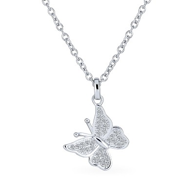 Bling Jewelry Mini Petite Tiny Clear Cubic Zirconia Micro Pave CZ Garden Insect Butterfly Pendant Necklace .925 Sterling Silver