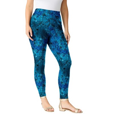 Woman Within Stretch-Cotton Knit Pull-On Printed Pocket Leggings