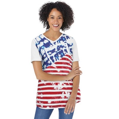 Woman Within Perfect Printed Three-Quarter Sleeve V-Neck Tee
