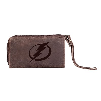 Evergreen NHL Tampa Bay Lightning Brown Leather Women's Wristlet Wallet Officially Licensed with Gift Box