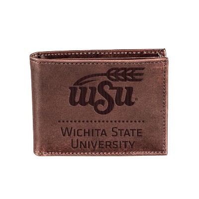 Evergreen NCAA Wichita State Shockers Brown Leather Bifold Wallet Officially Licensed with Gift Box