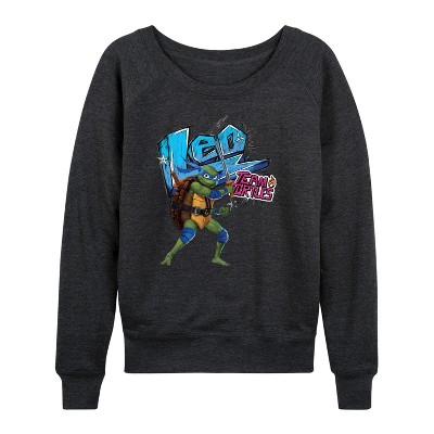 Women's - Teenage Mutant Ninja Turtles - Leonardo AKA Leo Lightweight French Terry Wide Neck Long Sleeve Graphic Shirt