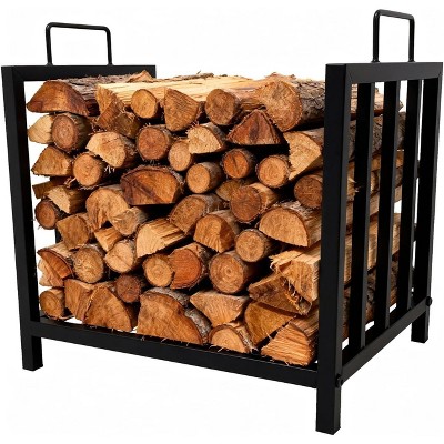 coucheta Firewood Rack, Heavy Duty Metal Firewood Holder with Handles, Portable Wood Rack Storage Organizer, Black