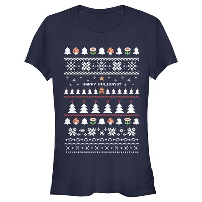 Juniors Womens Nintendo Christmas Evergreen Mario T-Shirt