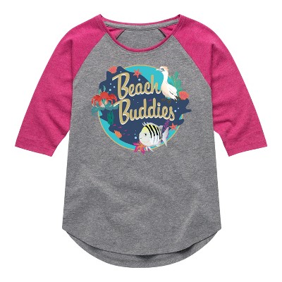 Girls' - Disney - Beach Buddies Shirt Tail Raglan Graphic T-shirt