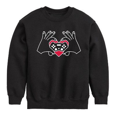Boys' - Instant Message - Valentine's Day Hand Heart Game Controller Graphic Long Sleeve Fleece Sweatshirt
