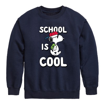 Boys' - Peanuts - School Is Cool Graphic Long Sleeve Fleece Sweatshirt