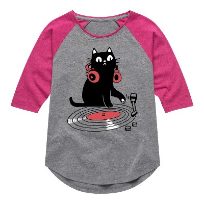 Girls' - Instant Message - DJ Cat Shirt Tail Raglan Graphic T-shirt