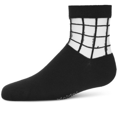 Memoi Girls Window Pane Sheer Cotton Blend Socks