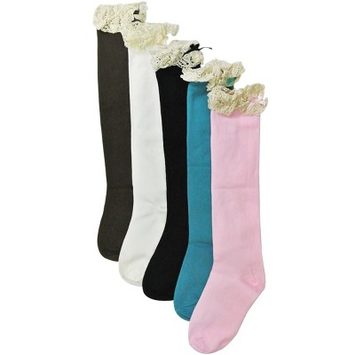 Wrapables Lace Ruffles and Bow Knee High Girl Socks (Set of 5)