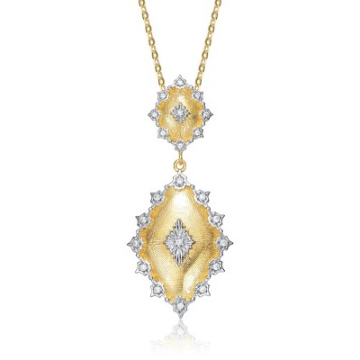 Elegant rhodium and 14k gold plated pendant necklace featuring sparkling cubic zirconia for a refined and sophisticated look