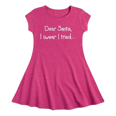Girls' - Instant Message - Santa I Tried Christmas Fit & Flair Cap Sleeve Graphic Dress