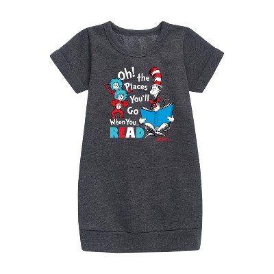 Girls' - Dr. Seuss - Oh Places Youll Go When You Read Graphic Short Sleeve Fleece Dress