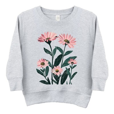 The Juniper Shop Pink Daisies Watercolor Toddler Sweatshirt - 4T - Heather Grey