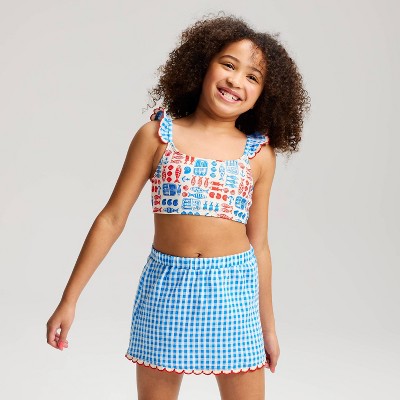 Girls' Fish & Gingham Bikini Skirt Set - Cat & Jack™ Blue