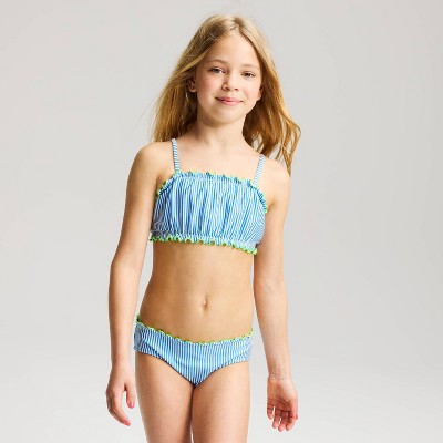 Girls' Seersucker Striped Bikini Set - Cat & Jack™ Azure Blue/Showy Green
