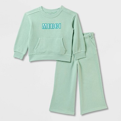 Toddler Girls' Adaptive French Terry Pants Set - Cat & Jack™ Light Mint Green