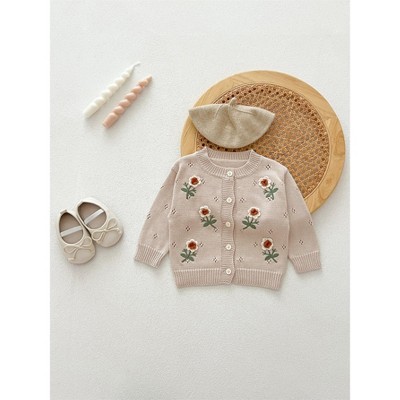 MyKids-USA Autumn New Arrival Baby Kids Girls Comfortable Flowers Embroiedery Pattern Knitted Long Sleeves Cardigan