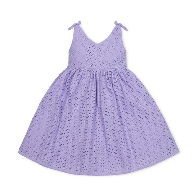 Hope & Henry Girls' Sleeveless Eyelet Bow Shoulder Swing Dress, Toddler