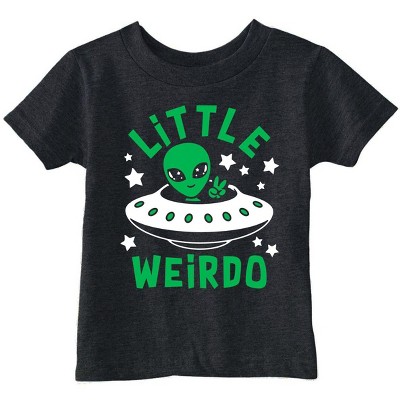 Toddler Funny T Shirts Little Weirdo Sarcastic Alien UFO Graphic Novelty Tee For Young Kids - Crazy Dog Toddler T Shirt For Astronauts