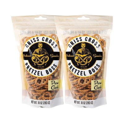 Criss Cross Pretzel Boss 10 oz Parmesan Garlic Flavored Pretzels - Pack of 2