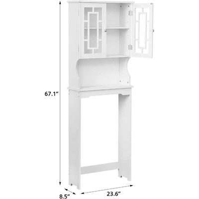 Erommy Over-The-Toilet Storage, Wooden Bathroom Organizer, with 2 Glass Doors & Adjustable Shelf for Bathroom, White