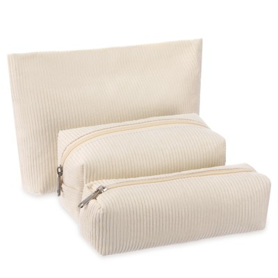 Narwey 3 Pcs Makeup Bag Set for Women Corduroy Cosmetic Pouch Aesthetic Smile Travel Toiletry Bag