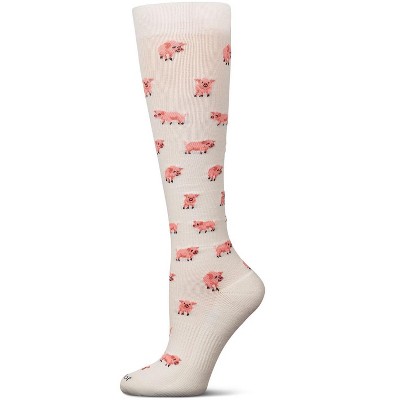 Memoi Pigs Cotton Blend 15-20 mmHg Graduated Compression Socks Ivory 9-11