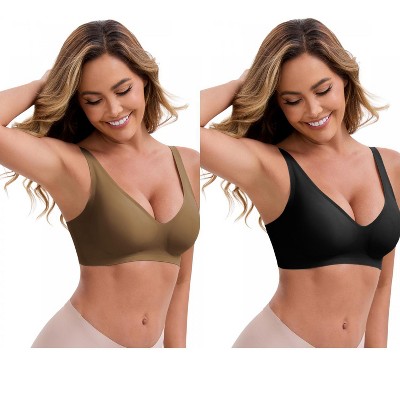 INSPIRE CHIC Women's Deep V-Neck Wireless Adjustable Spaghetti Straps Push-Up Seamless Soft Everyday Bras 2 Packs
