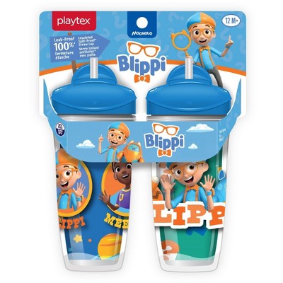 Playtex Baby – Sipsters Stage 3 Insulated Straw Cups, 9 oz, 2-Pack, Blippi & Meekah, Spill-Proof & Leak-Proof, BPA-Free