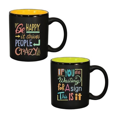 Storied Home Round Hand-Painted Stoneware Mug with 4 Various Holiday Sayings , Multicolor, Set of 12